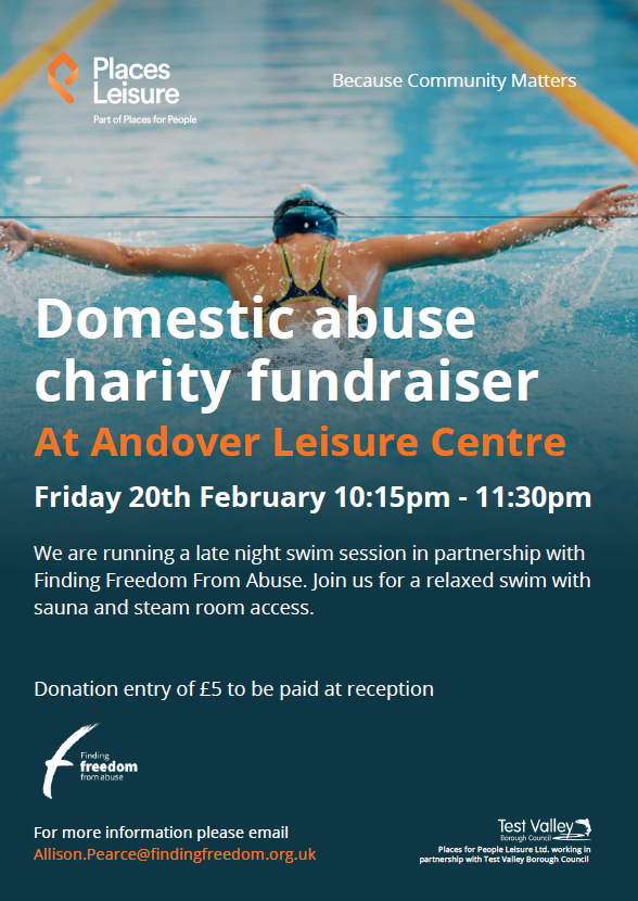 Our late-night swim at Andover Leisure Centre in January, was a great success and raised £230. We are so grateful for the continued support from Andover Leisure Centre team, Local Cllr Iris Anderson, members from the community and our staff, for all their time and efforts to help raise funds for our  service we and we want to say a huge thanks to everyone who helped make this night a success!